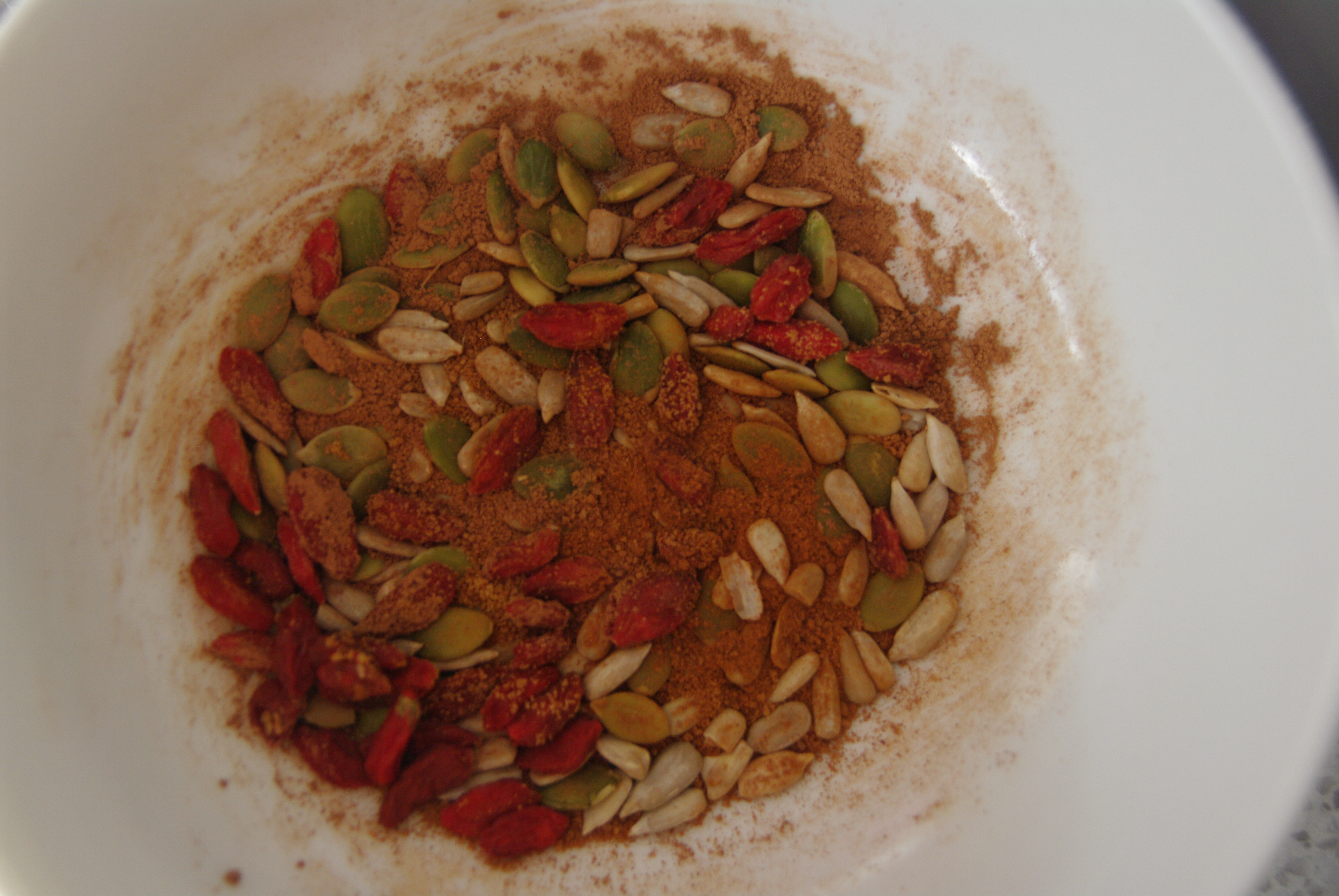 Berries are high in anti-oxidants and  have been found to have many other helpful functions as well, from anti-cancer and anti-inflammation to reducing muscle soreness after exercise(if you eat the berries prior to the exercise).  We have just added them to our diet, by adding them to our morning porride(frozen blueberries or fresh strawberries).  Berries, beans and greens may be the best things for us to eat on the planet! BREAKFAST PORRIDGE We eat a lot of porridge!  Rolled Oats and water(well actually, unstabilised organic oats and water) with lots of other stuff chucked in the bowl.  We add: – ground flaxseed(we don’t have a grinder at the moment so we are adding wheatgerm instead) – cacao nibs -blueberries – banana – sultanas – cinnamon -sunflower seeds -pepitas (pumpkin seeds)